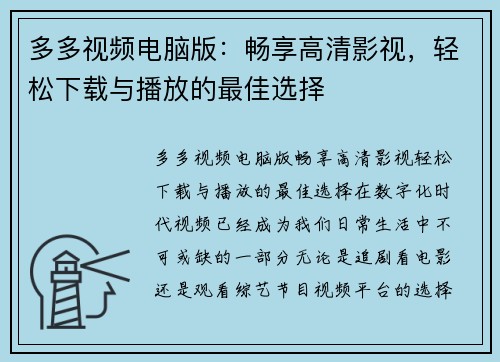 如何在哔哩哔哩上快速下载视频的详细指南 在如今这个信息爆炸的时代,视频已经成为我们获取知识和娱乐的重要方式。哔哩哔哩(B站)作为中国最大的弹幕视频网站之一,拥有海量的优质视频资源。然而,由于网络环...